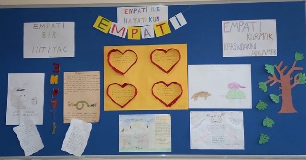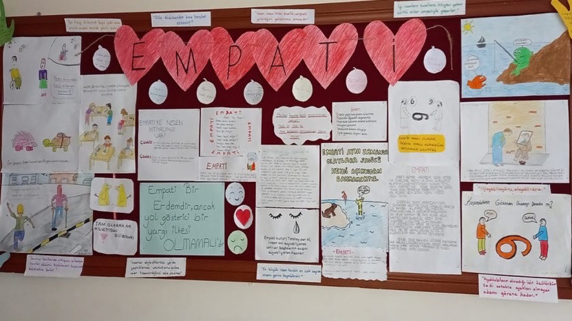 "Yaşat ki değer bulsun" projesi kapsamında okulumuz 6. ve 7. sınıfları arasında düzenlediğimiz "Empati" konulu Sınıf Panosu yarışması sonuçlandı. İlk 3 sırada görünen panolarımız dereceye giren sınıflarımız 6E, 7C ve 7E sınıflarımızın panoları. Yarışmaya katılan sınıflarımızı böyle bir farkındalık içinde bulundukları için tebrik ediyor, kendilerine teşekkür ediyoruz